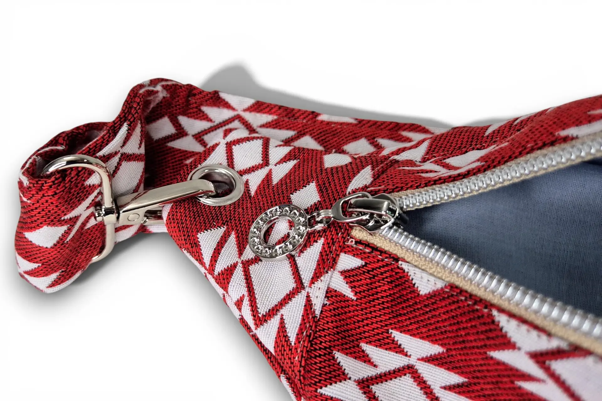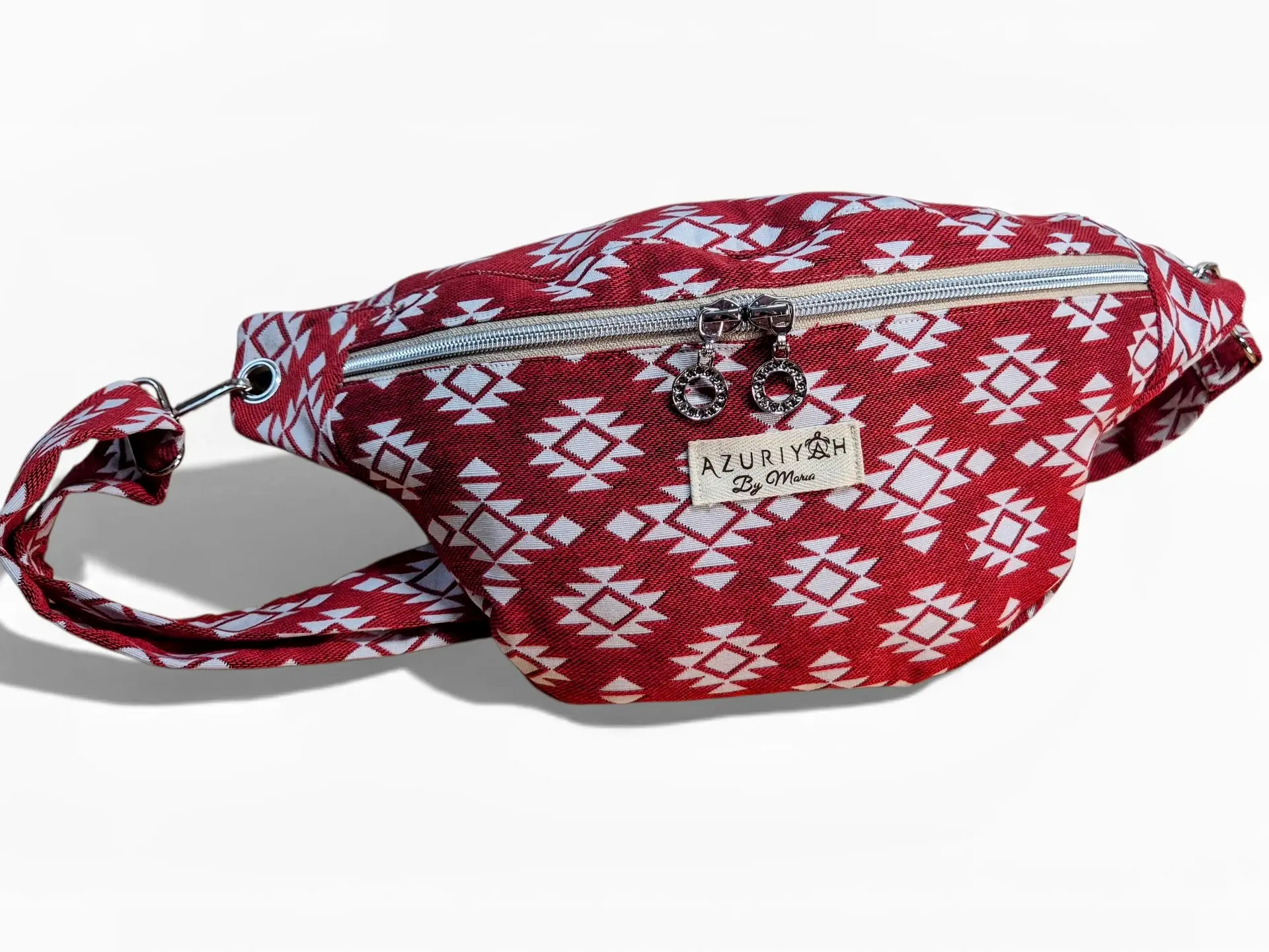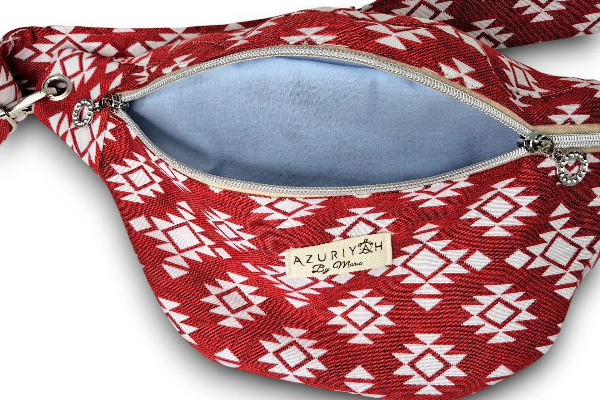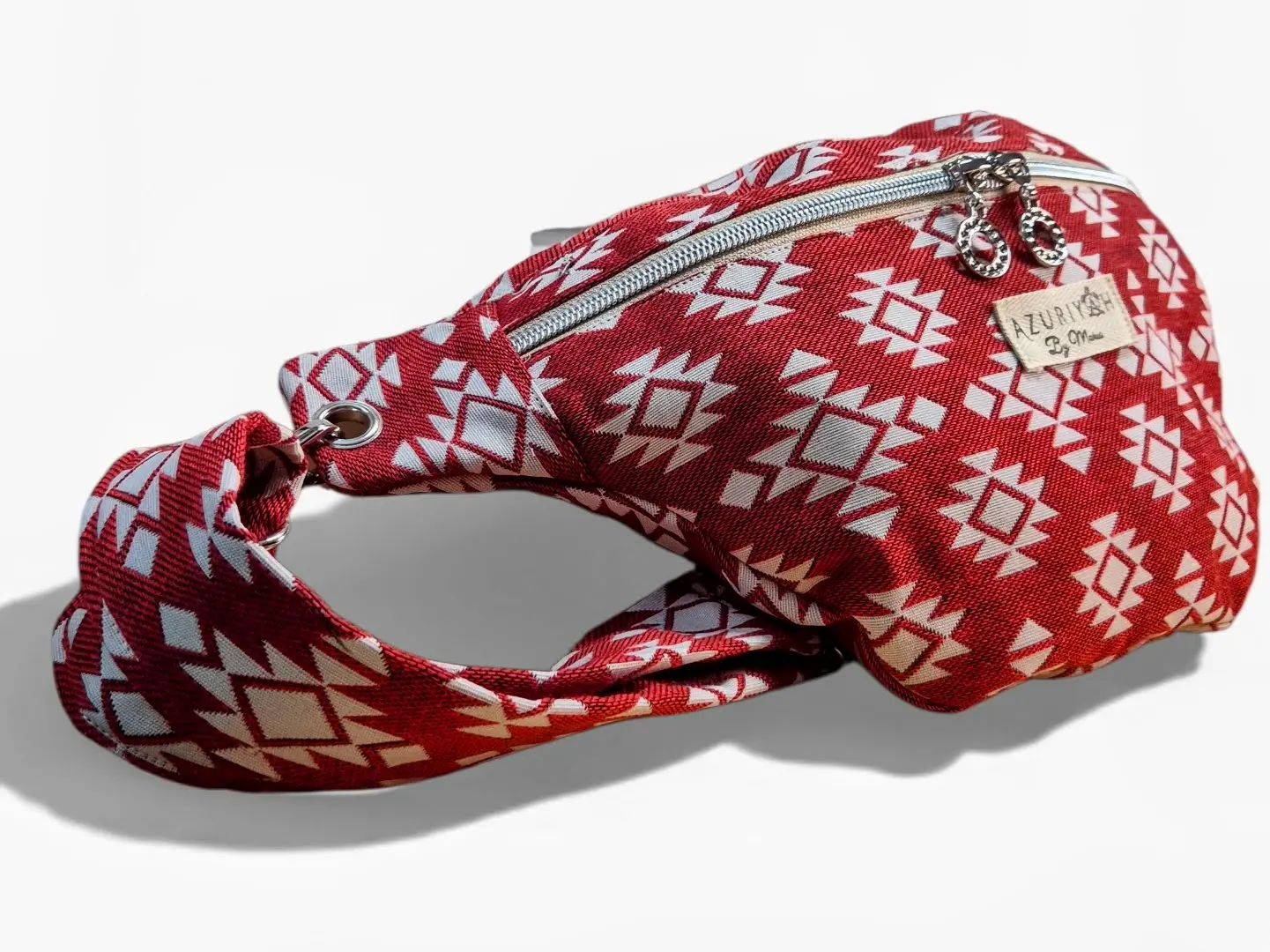 Est une pièce de caractère qui puise sa force dans la noblesse de sa matière. Confectionnée à partir d’une chute de tissu jacquard aux motifs géométriques vibrants, elle offre une texture riche et un relief unique au toucher. Pour équilibrer son tempérament affirmé, elle cache en son cœur une doublure en drap de coton bleu azur, héritage d’un textile ancien empreint de douceur. C’est la banane parfaite pour celles qui veulent un accessoire authentique qui raconte une histoire.